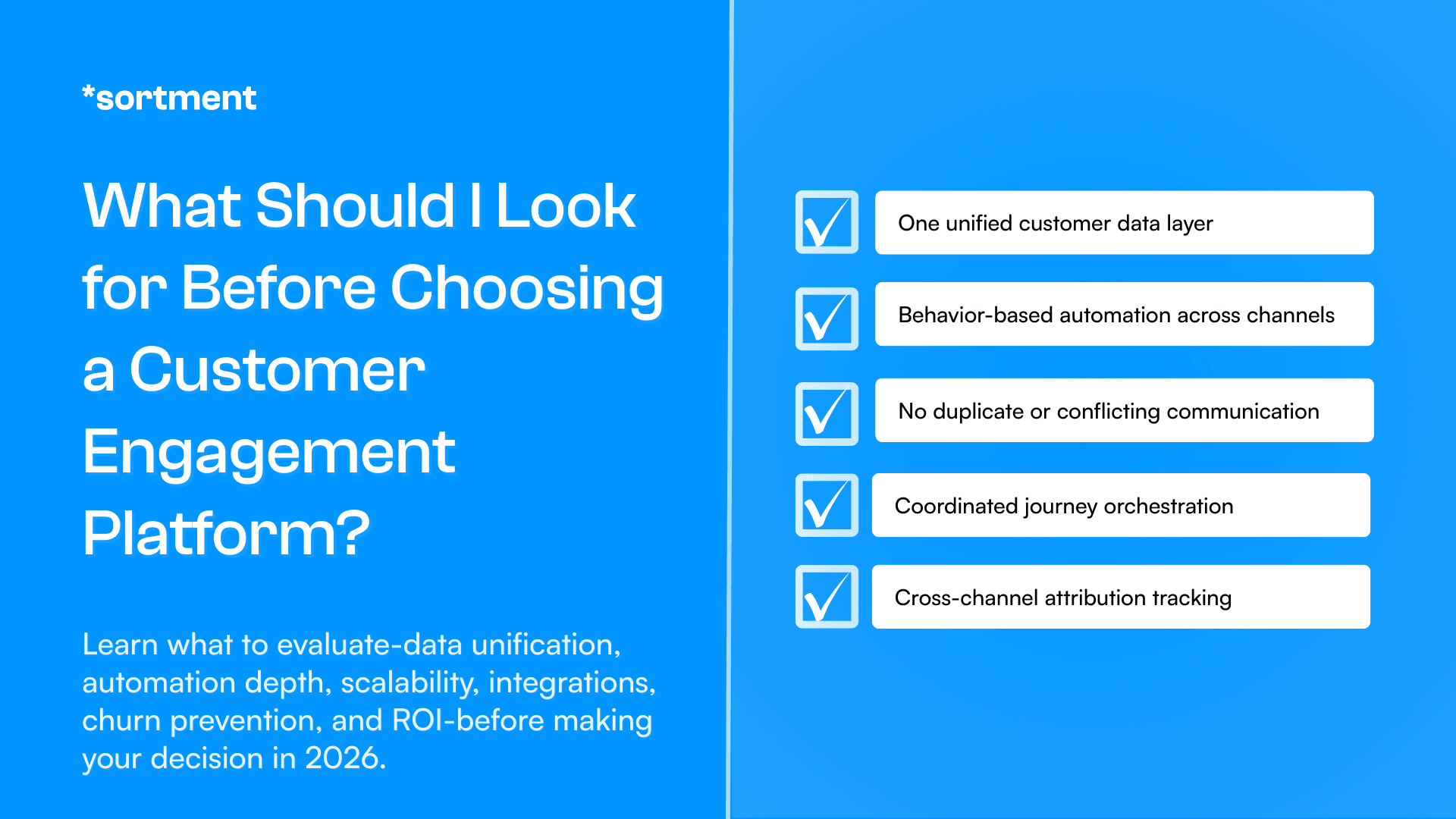 Choosing a customer engagement platform? Learn what to evaluate-data unification, automation depth, scalability, integrations, churn prevention, and ROI-before making your decision in 2026.