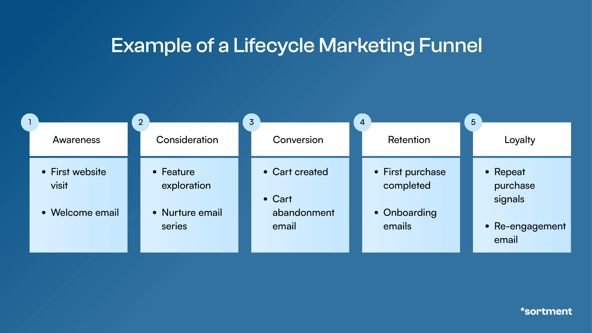 Each message is designed to move the customer toward the next stage of the lifecycle.