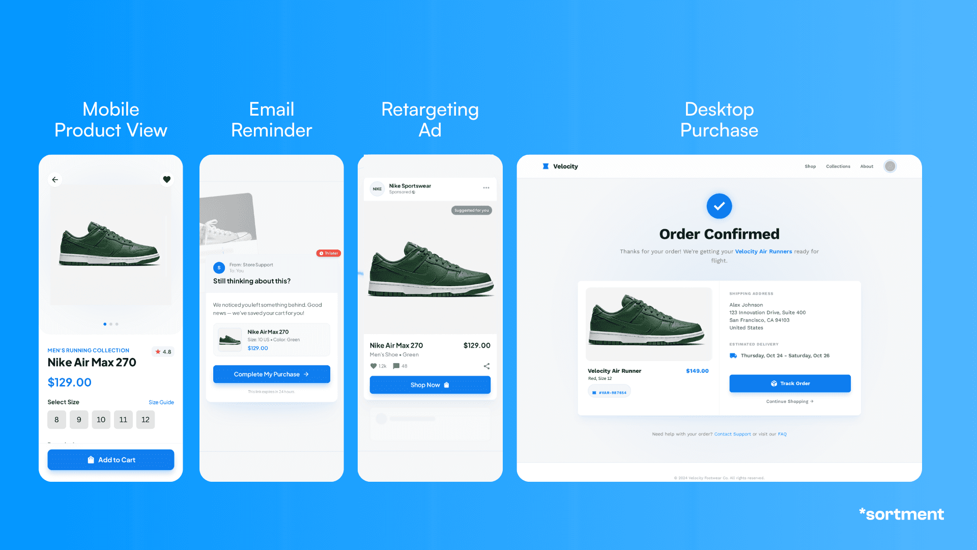 Figure: Unified ecommerce journey across mobile, email, ads, and desktop.